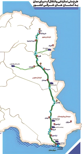 برای انتقال آب از دریای جنوب به استانهای هرمزگان، فارس، بوشهر،کرمان، یزد، سیستان و بلوچستان، اصفهان و خراسان ۵ خط انتقال آب مورد بررسی و تایید نهایی قرار گرفت. هدف اصلی از تاسیس این خطوط در مرحله اول، تامین آب صنایع در استان‌های مذکور بوده است تا ضمن کمک به بقا و توسعه صنایع، از سهم آزاد شده آب شیرین مصرفی آنها بتوان بخش مصرف خانگی و کشاورزی را با منابع بیشتری پشتیبانی کرد.